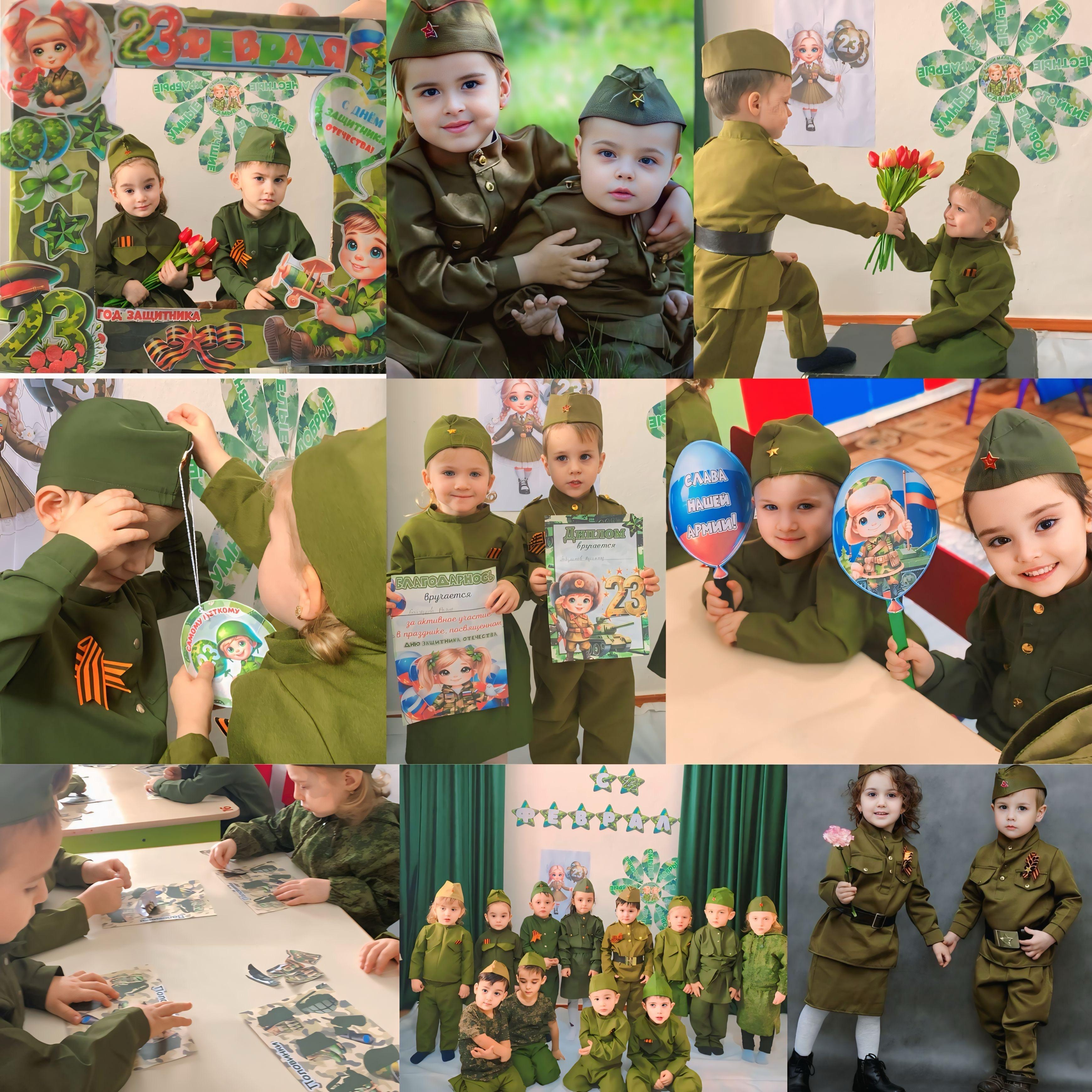 23 февраля – это праздник не только военных, но и всех мужественных и отважных людей, мальчишек детсадовского возраста, которые достойны сердечных поздравлений в мужественный февральский день. А пока мы знакомим детей и рассказываем, что такое армия, воспитываем уважительное отношение к военному человеку, человеку в форме, прививаем любовь к Родине, и развиваем патриотические чувства. Такие мероприятия, проведённые с детьми, закладывают в их душах зёрнышки патриотизма, чувства долга перед Родиной.
